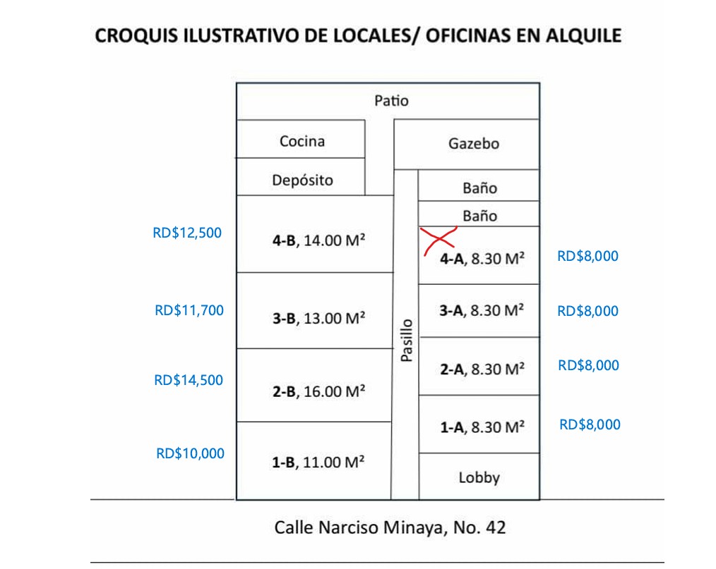 - RD$ 8,000 DOP por m² En Renta